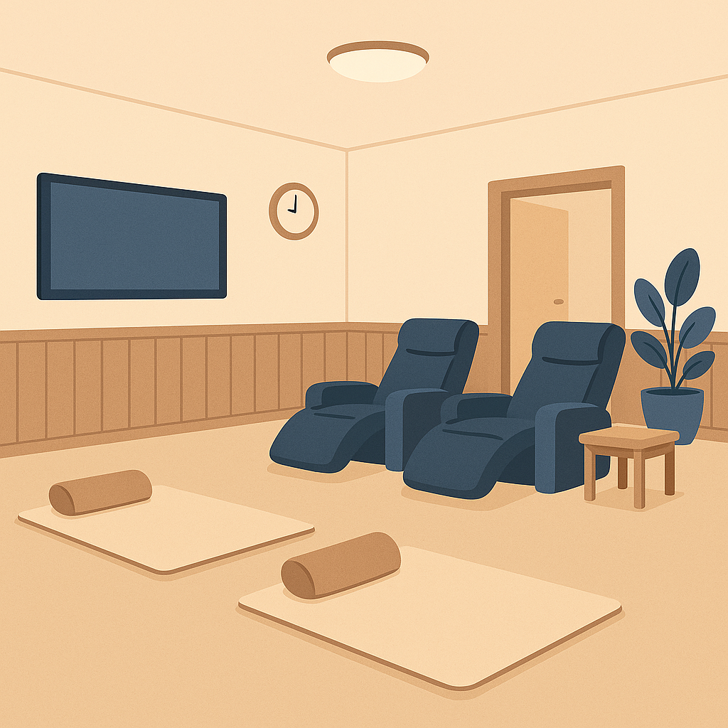 - 공용 휴식 공간(온돌 바닥, TV존, 수면실)